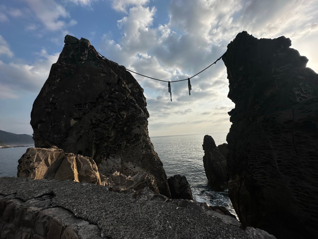 Nejiriiwa – “Twisted Rock”. On the path up to Hotsumisakiji. Kukai’s mother was climbing the mountainside to visit her son who was in training at the temple above. Suddenly a violent storm broke out. Kukai came down and twisted the rocks into a shelter for his mother.