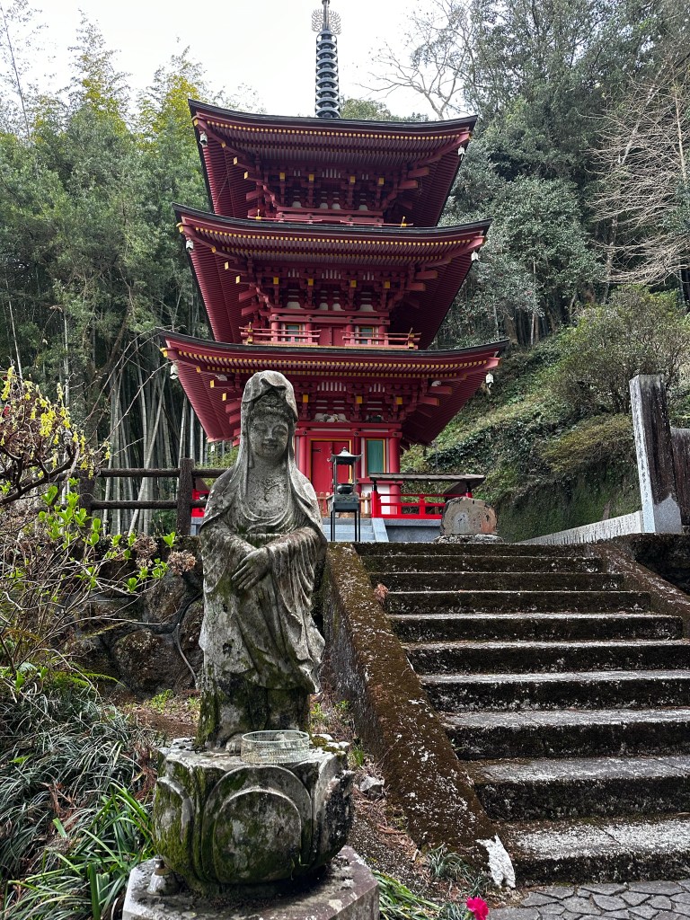 As we approached within two hours of Temple 36, we discovered our navigation guides recommended going through the 830 meter Tsukajizaka Tunnel. Connor seems to dislike the automobile tunnels and our guidebook recommended taking the Shoryuji Trail over the mountain instead. We figured taking the trail would add some time, but there was only one way to find out how much. In the end, the trail added about 25 minutes to our estimated arrival time, so it wasn’t particularly concerning. We did, however, see a number of signs warning hikers to be watchful for mamusha, an Asian pit viper similar to rattlesnakes in the Americas, but the signs noted the active period for the snakes started in April and ran through October. We were likely safe … for now.