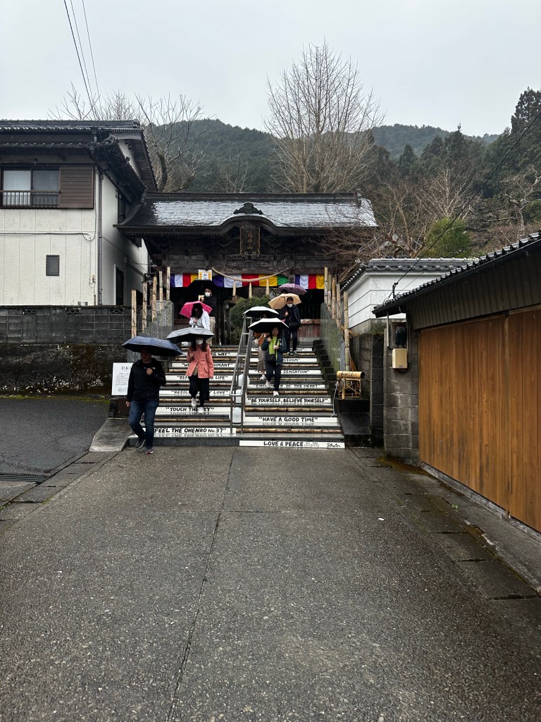 We reached Temple 37 (Iwamotoji – “Rocky Root Temple”) at 4:40 p.m., plenty of time to recite the sutras and the Hondo and Daishido, and get our items stamped at the nokyojo (“stamp office”).