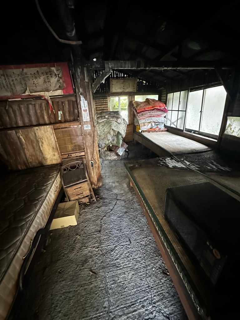 Kanoshira – Bedroom. A leak had developed in the roof and one of the bed frames is now covered in mold and the blankets were filthy.