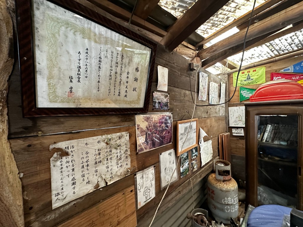 There is a rest hut called Kanoshira which has been described as “legendary” in some of my research. It’s a place you could see had been built with love and used frequently over many years, but now fallen into a state of decay. It has a built-in bedroom, living room/kitchen with small stove, and clothes washer. The only thing we believe still works is the faucet by the washer.