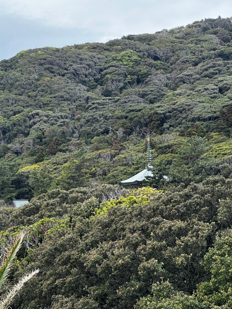 We only climbed a short time until we again rejoined the small coastal road we had left 15 minutes before. On gaining the road, we again ran into two resting older Japanese gentlemen who’d we been leapfrogging with over the past two days. Greetings and smiles were exchanged as we passed, sure we would probably see them again today or tomorrow.
