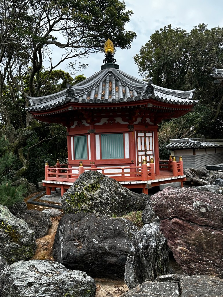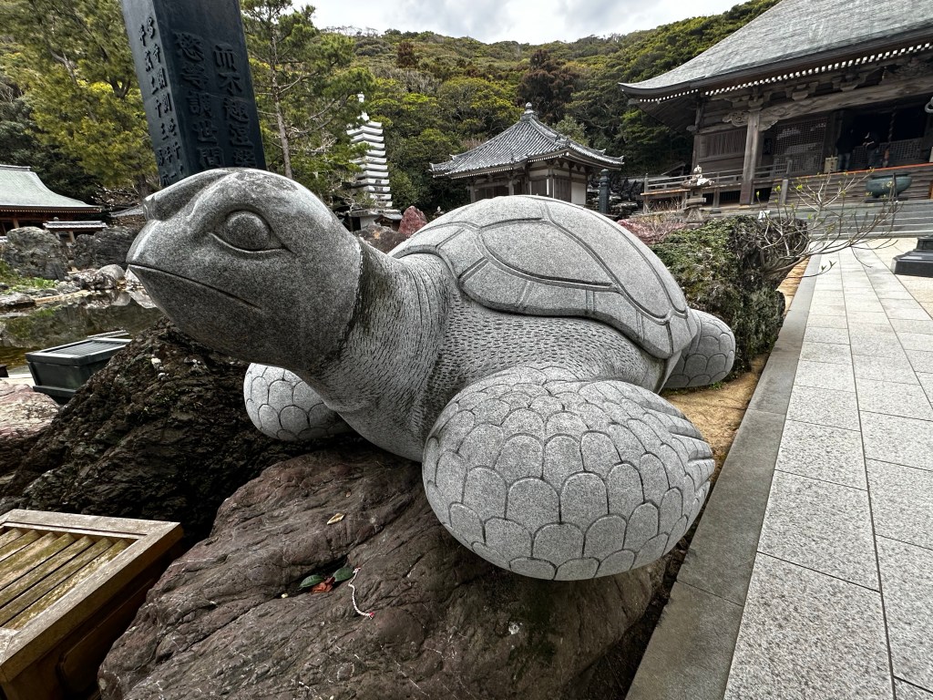 Kongofukuji – Kukai had been stranded on a small island out at sea. After he called out to the universe for assistance, a great sea turtle arose from the waves and carried Kukai on his shell back to shore.