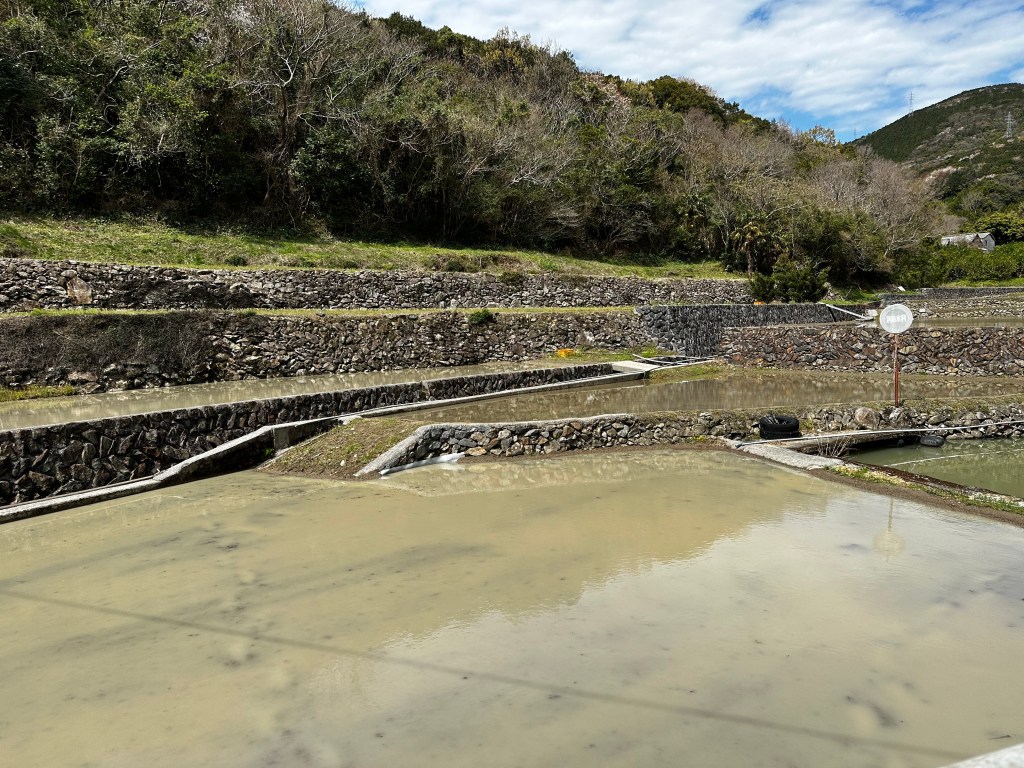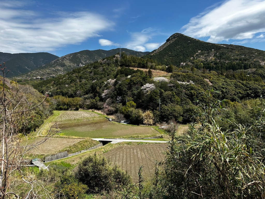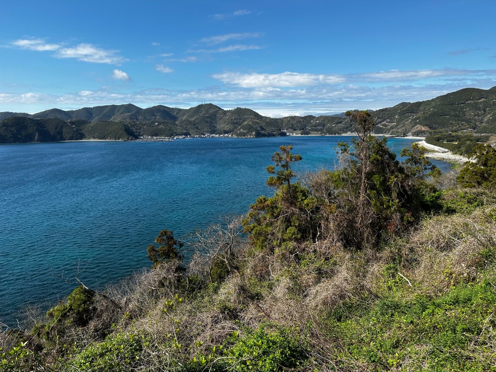 We decided to stop for lunch at Morode Coast on what appeared in our route guide to be an observatory platform next to the ocean. It was a half kilometer descent from the main road to the ocean, but the promise of a good view and an available toilet enticed us forward. We were almost to the bottom when Connor looked out and observed, “Isn’t that Kyushu?” Indeed it was. It was a clear day and you could just make out the mountain ranges of Kyushu, the third largest island of Japan, on the distant horizon.
