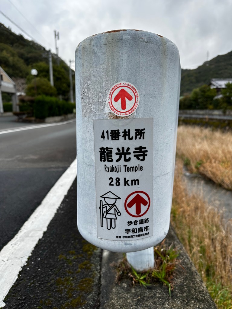 Note: I forgot to mention the following items over the previous two days. Along the pilgrim route, Ehime is referred to as “The Dojo of Enlightenment.” Also, after passing Temple 40, we’re considered to be halfway through the 88 Temple Pilgrimage. We’ve now been to the southernmost and westernmost points along the pilgrim path. We have turned north and will be returning eastward going forward.