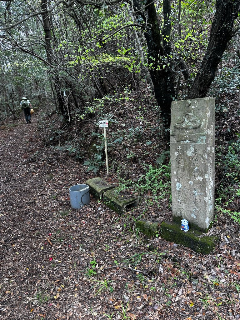 When we got there, we saw that it was indeed a rest hut, but one for a construction company. Probably for a nearby project. Anyway, it was next to a paved road which we could follow out, so we were essentially almost out of the “realm of inconvenience.” We followed the paved road down in the direction we thought most likely to lead us to the pilgrim road. We were on the road less than five minutes when Connor looked right and said, “Well, that’s pretty damn unambiguous.” We were back to the henro michi.