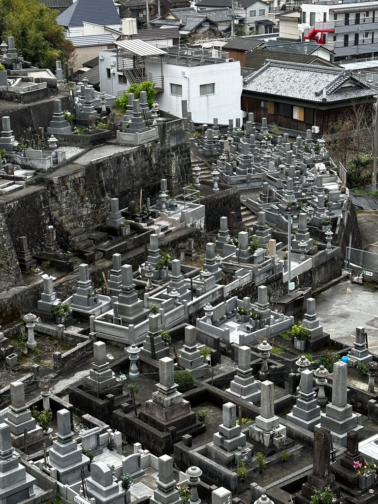 Ryukoin (Bekkaku Temple 6 – “Dragon’s Light Temple”) sits atop a large hill overlooking the city. The next hill over from the temple hill holds a large graveyard climbing in tiered levels from bottom to top.