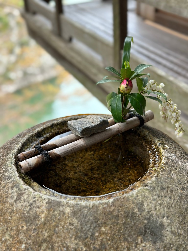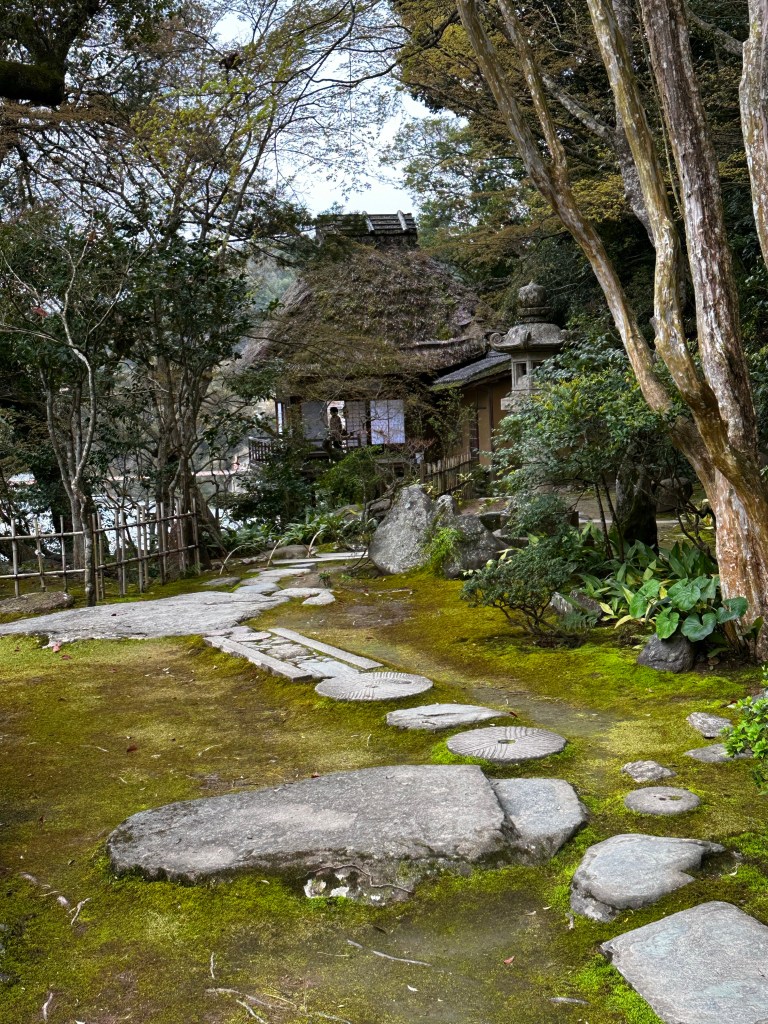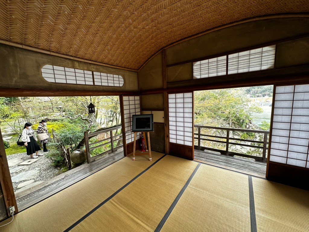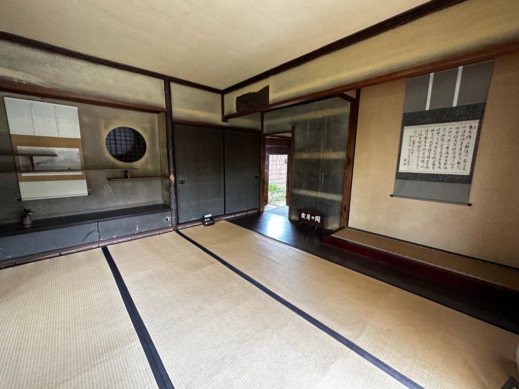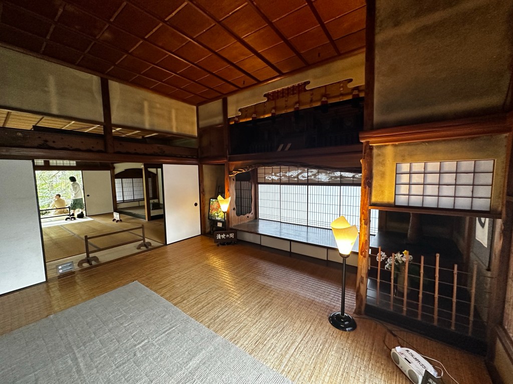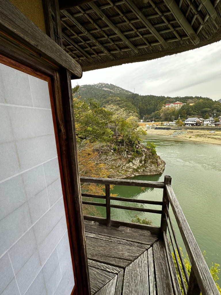 We had left Meisekiji before 9:00 a.m. with a goal of making it to Ozu City by 3:00 p.m. After learning Connor had studied architecture in college, a fellow guest at Guest House Okinohama several days ago recommended he visit Garyu Sanso as well as nearby Ohanaha Street. Garyu Sanso was intended as a private retirement home of a wealthy merchant with an eye toward classic Japanese architecture design – a home with a large private garden and separate tea house overlooking the Hiji River. Ohanaha Street and surrounding area, on the other, has been used as the backdrop for a number of Japanese period dramas and other television/movie projects, including 1991’s “Tokyo Love Story.”