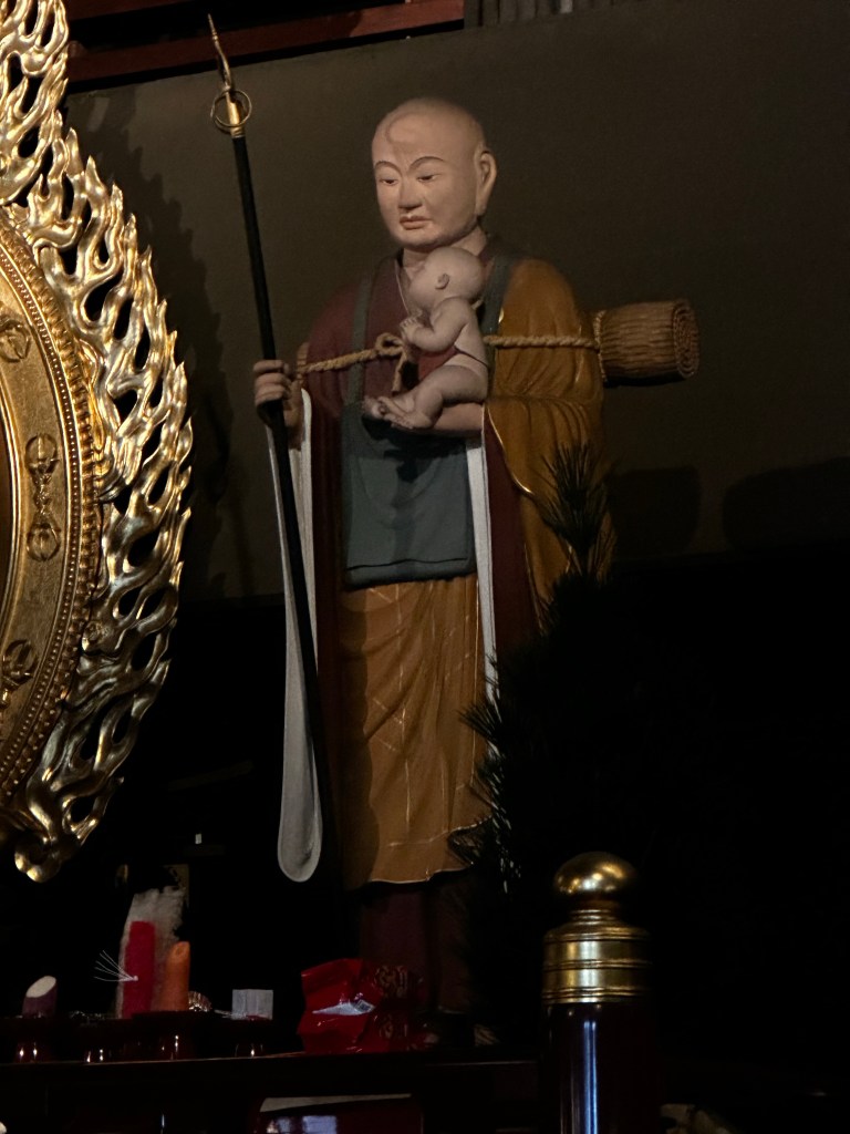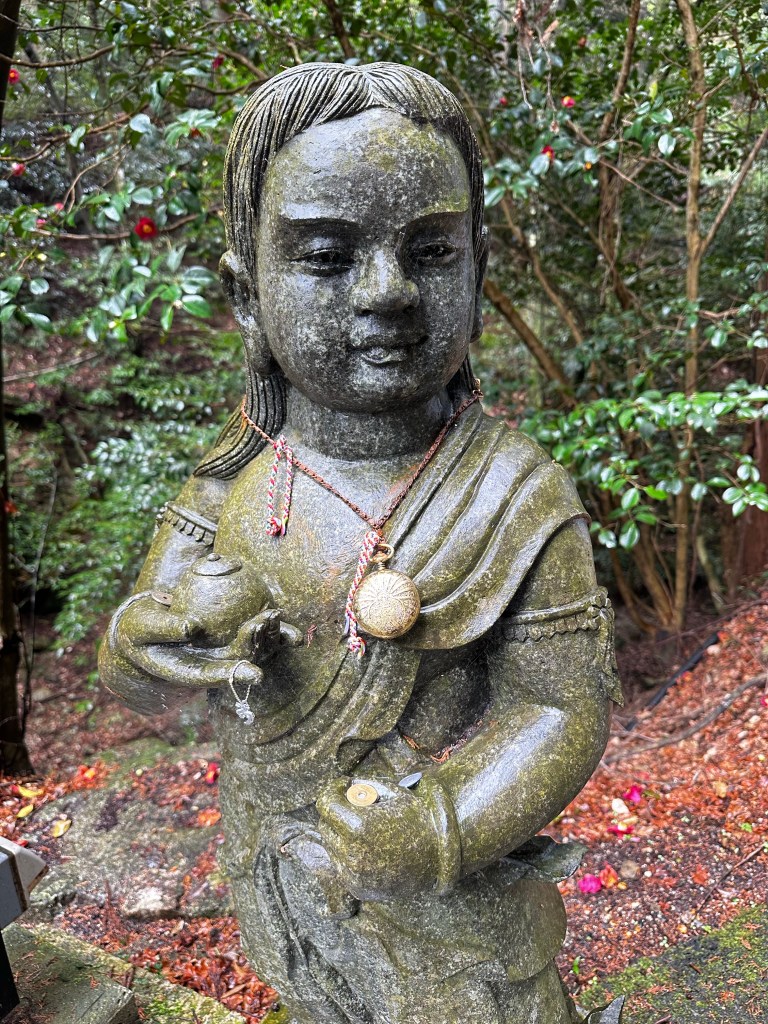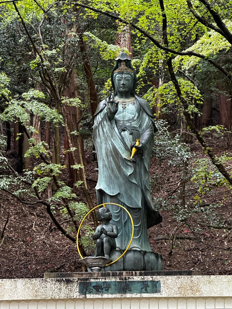 Walking from the coast to the nearby mountains to get to Bekkaku Temple 10Bridge to the path to the stairs to KoryujiPath up to Bekkaku Temple 10Hondo – Koryuji (Bekkaku Temple 10)Bell Tower – KoryujiOn the Daishido – KoryujiKoryujiAfter an older couple left, there were no other visitors on the temple grounds other than Connor and I. The lady working at the stamp office saw me limping around, so she gave me a foot massage! She also gave Connor a hand massage while I was attending to my temple duties.KoryujiIkiki Jizo/Ikikizan Shozenji (Bekkaku Temple 11 – “Living Tree Jizo”/“Living Tree Mountain Temple of True Goodness”)Money placed in the crevasses of the treeIkiki JizoThe temple grounds are located behind a used car sales lot.Approaching the mountains that hold Temple 60.
