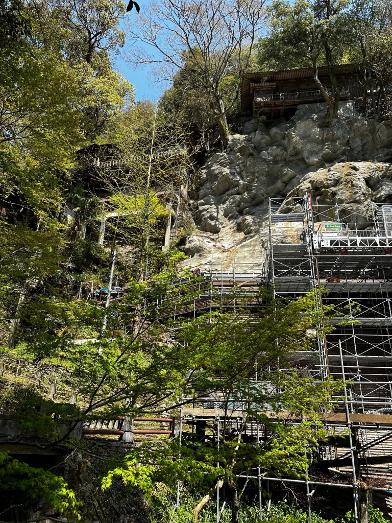 Senryuji (Bekkaku Temple 13 – “Hermit Dragon Temple”). The temple sits atop the cliff. We were unsure what type of work they were doing below.