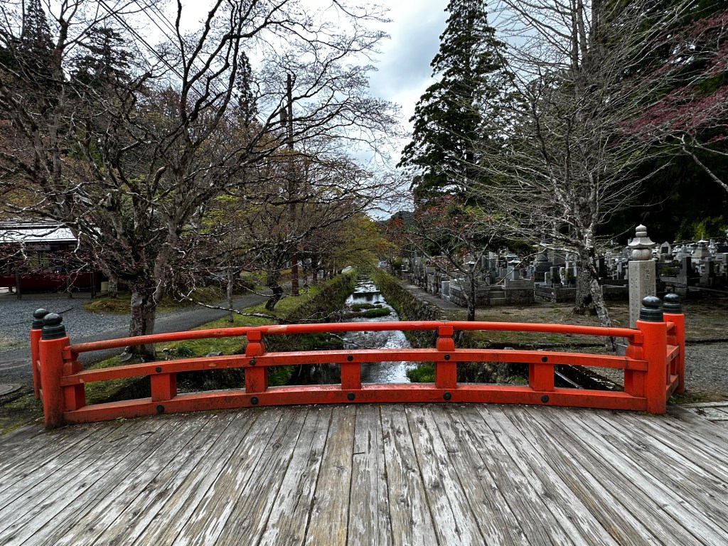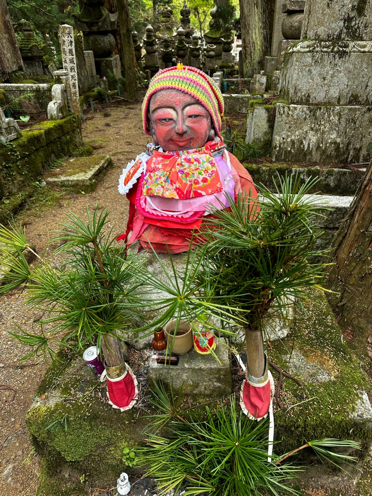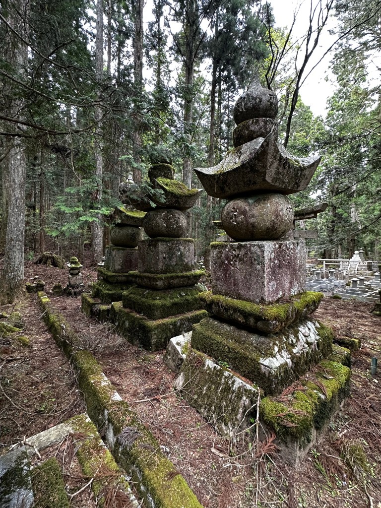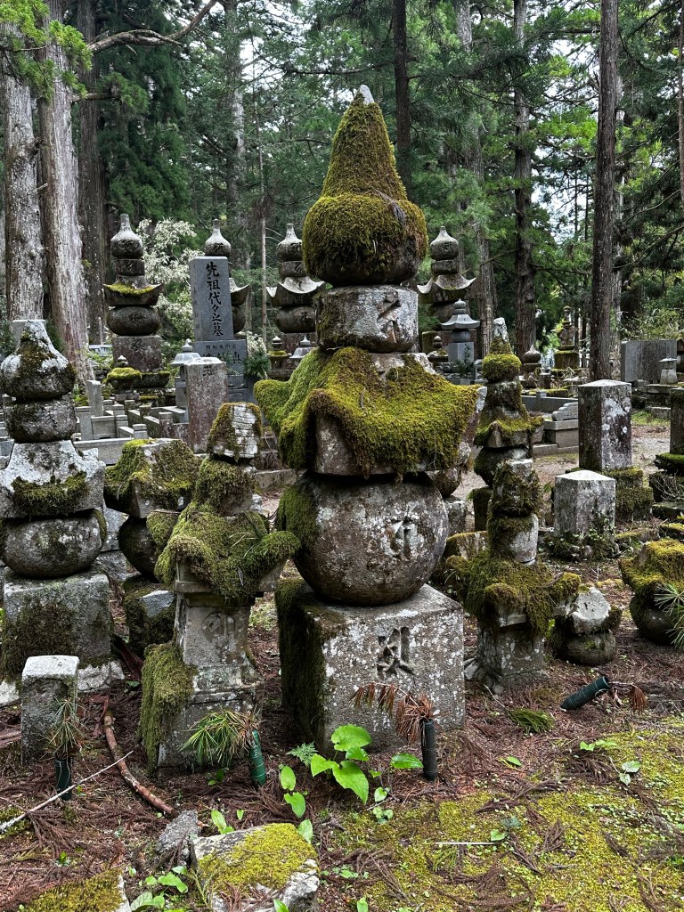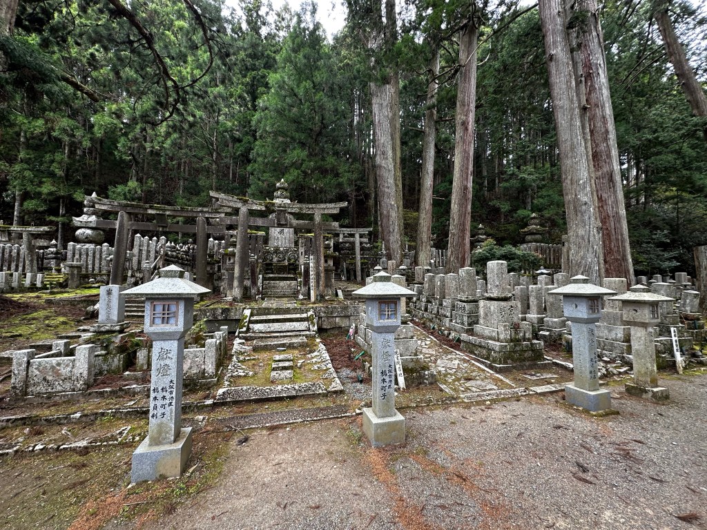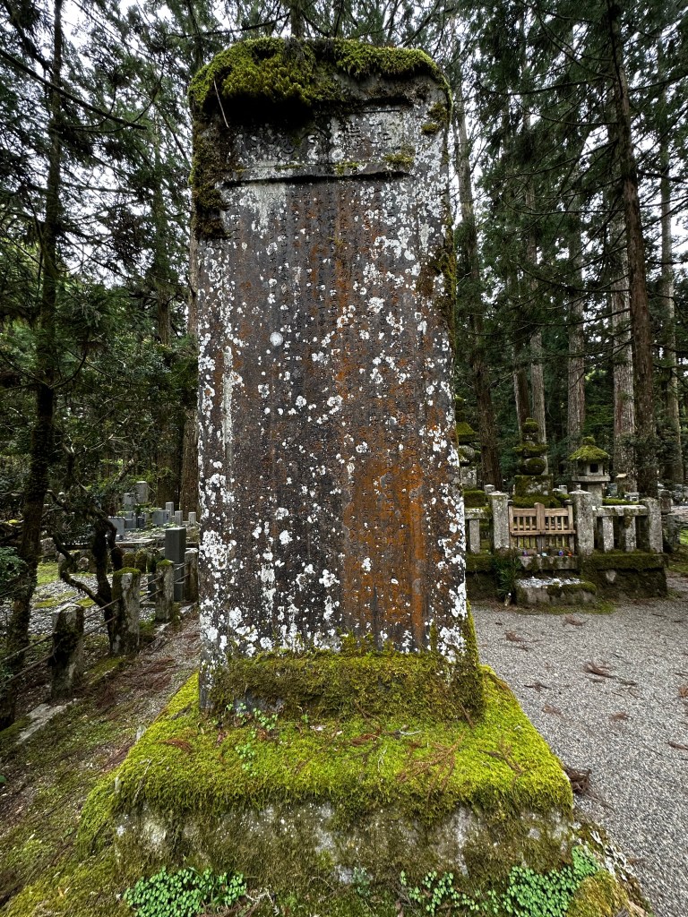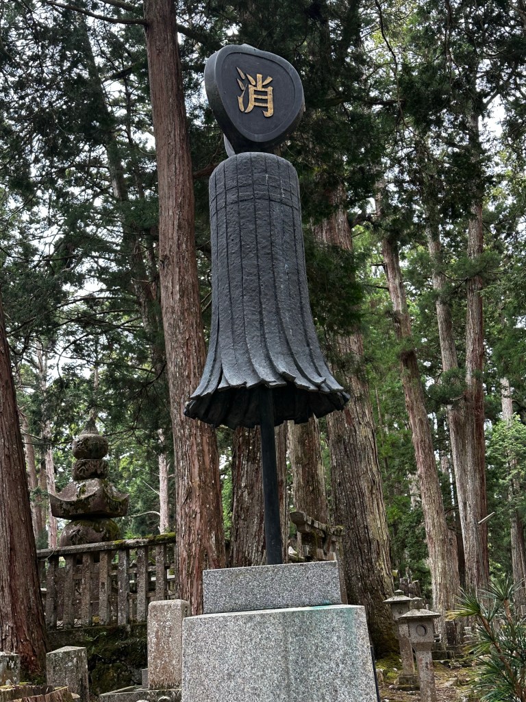 I decided to get some breakfast first at the Family Mart and then walk over to get a picture of the Daimon (“Great Gate”) at the entrance to Koya. I took a few pictures and was about to head to the cemetery where Kobo Daishi’s mausoleum is located when I heard a voice call out to me. It was Vincent whom we’d walked with back at Temple 65. We’ve been in communication on and off since then and I knew he planned to be at Koya today, so it wasn’t a huge surprise.
